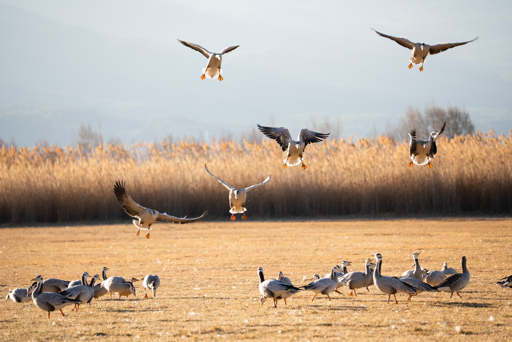 目前,保护区内集结了大量越冬候鸟,有黑鹳、黑颈鹤、中华秋沙鸭等国家一级保护鸟类11种,灰鹤、白琵鹭等国家二级保护鸟类59种。